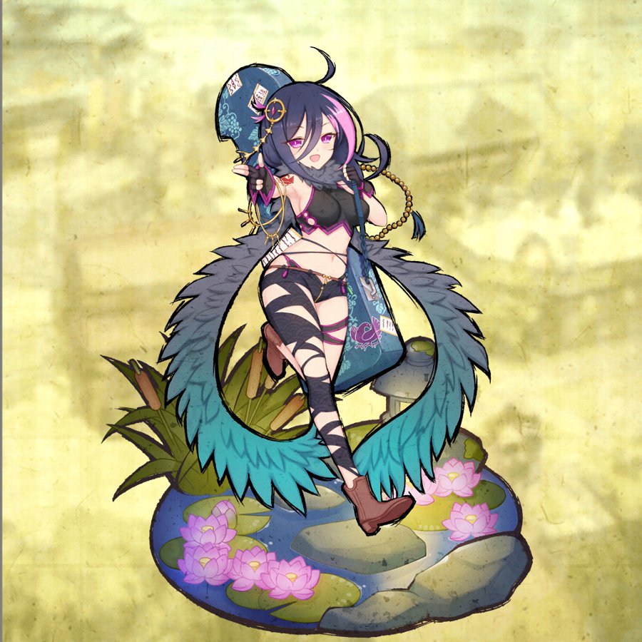 | 進化前 | 雑賀孫市―― 傭兵集団雑賀衆を統べ、如何なる権力にも屈しない者たちの長。 その姿は常に、旗印に描かれた八咫烏紋と共にあった。 ある時、織田信長の使者が孫市を訪ねてきたが、横柄な態度であった。 孫市は躊躇なくその使者へ引き金を引いたという。 |