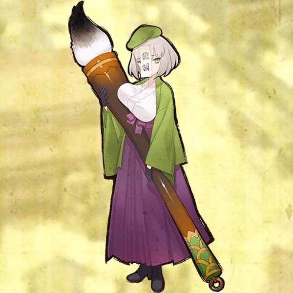 | テキスト | 巨大な筆を持った謎の女性。 存在感が希薄で気付くと背後に佇んでいる事が多い。 彼女に会えると、不思議な力が湧くという。 |